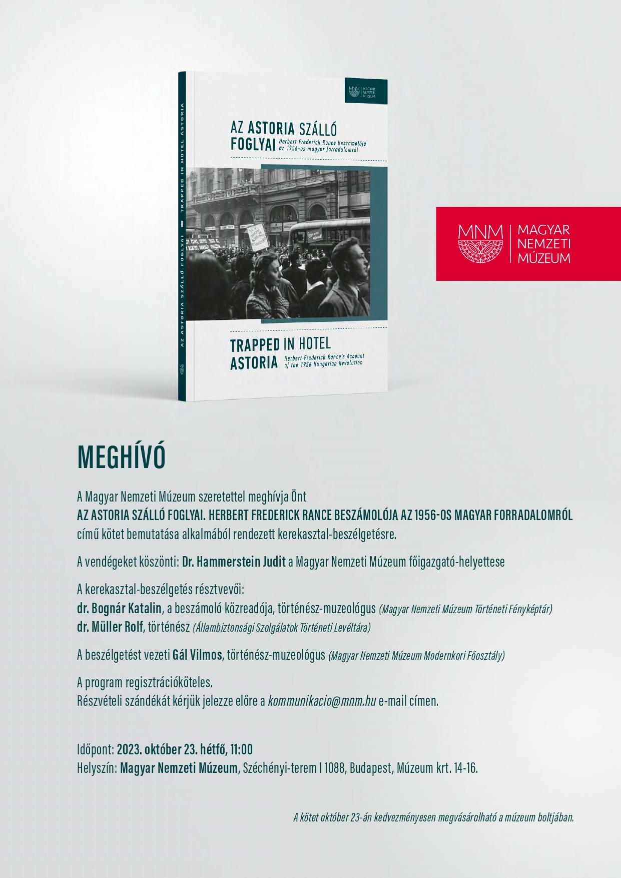 A kötet október 23-án kedvezményesen megvásárolható a múzeum boltjában.