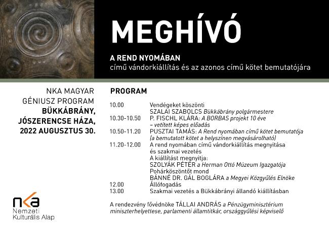 📖Az angol nyelven már megjelent köteteknek köszönhetően külföldön kiemelkedő szakmai figyelem kíséri e kutatást. A Martin Opitz Kiadónál 2022 tavaszán megjelent „A rend nyomában. 4000 éves települések a Bükkalján és a Borsodi-síkság területén” című kötet és a most megnyíló kiállítás által végre magyarul, a helyben élők számára is elérhető módon sor kerülhet az eredmények első összefoglalására és bemutatására. A kötet és a kiállítás a Nemzeti Kulturális Alap és a Magyar Géniusz-program támogatásával valósul meg.