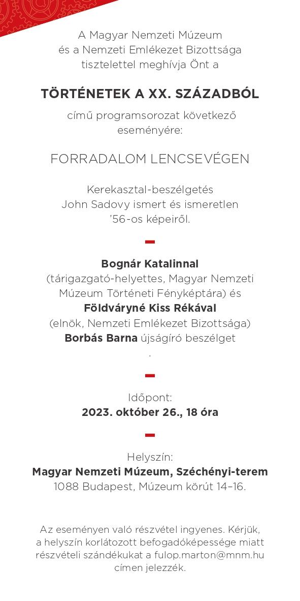 Kerekasztal-beszélgetés John Sadovy ismert és ismeretlen ’56-os képeiről.