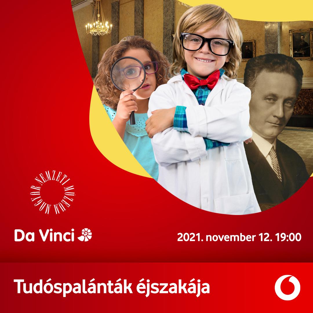 A Da Vinci Kids, a szórakoztató élménytanulás képviselője interaktív online eseménnyel jelentkezik a Magyar Nemzeti Múzeumban. 2021. november 12-én péntek este a regisztrált résztvevők a Tudomány világnapja alkalmából magyar tudósokkal és nemzetközi találmányokkal ismerkedhetnek. Az esemény kommunikációs partnere a Vodafone Magyarország.
