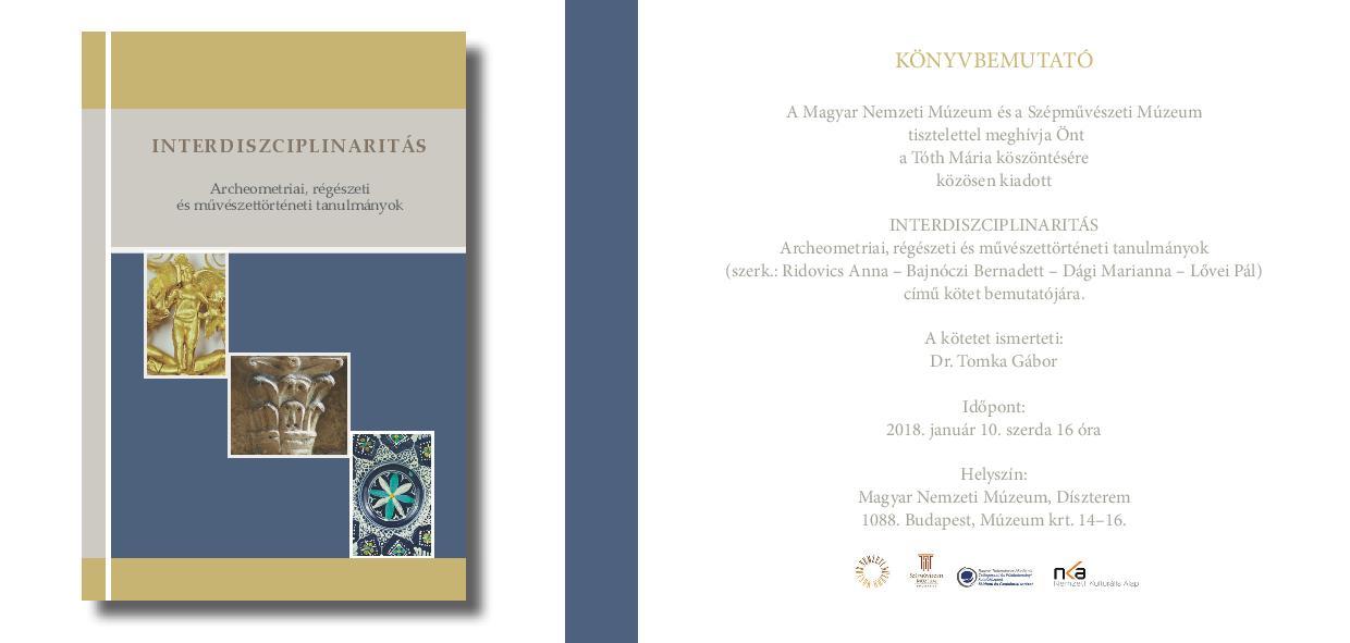 INTERDISZCIPLINARITÁS - Archeometriai, régészeti és művészettörténeti tanulmányok (szerk.: Ridovics Anna – Bajnóczi Bernadett – Dági Marianna – Lővei Pál) című kötet bemutatójára.