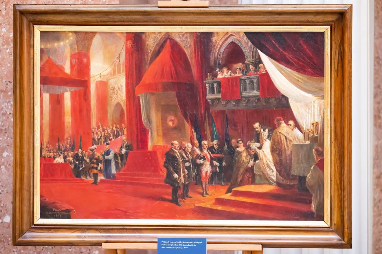 Mindössze egy hónap alatt szervezték meg az utolsó magyar király, IV. Károly koronázását. A jeles eseményről már fénykép is készült, ám sokáig mégis a festmények színes reprodukcióit ismerték, amik elsőként az IIlustrirte Zeitung 1917. január 25-i számában jelentek meg dupla oldalakon. 2021 májusában egy aukción bukkant fel a két ábrázolás nagyméretű, kidolgozott olajfestmény-változata, melyet a Magyar Nemzeti Múzeum az NKA miniszteri keretének támogatásával megvásárolt. A Hónap kincse kamarakiállításon való bemutatásukkal az intézmény a száz éve, 1922. április 1-jén elhunyt utolsó magyar király előtt tiszteleg. A kiállítás április 21-től egy hónapig látogatható a Magyar Nemzeti Múzeum Kupolatermében.