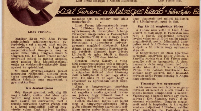 A képes hetilapban közölt enteriőrkép eredeti pozitív fényképét a hátoldalon lévő jelzetek alapján a Press-Agency E. Jób készítette. A dokumentatív felvétel középpontjában a zongoravirtuóz, karmester, zeneszerző és tanár komponáló íróasztala áll, amit Ludwig Bösendorfer bécsi műhelyében gyártottak, kifejezetten Liszt számára. „Ismét pompás műtárggyal ajándékozott meg, amely író-, háló- és étkező termemet ékesíti. A látogatóknak előszeretettel mutogatom ezt a műtárgyat (…) amelyre a nekem oly kedves L. Bösendorfer név hamarosan rá lesz vésetve.” – írta a művész hangszerkészítő barátjának 1877. január 30-án, a Budapesten kelt köszönőlevelében.