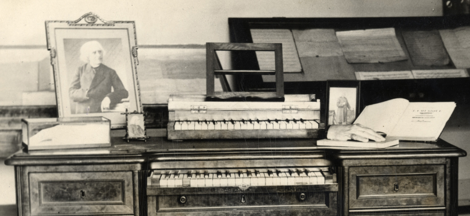 1932-ben a Tolnai Világlapja illusztrációt közölt a budapesti Zeneakadémia emlékszobájának korabeli berendezéséről Sebestyén Ede Liszt Ferenc, a tehetséges kezdő című cikkéhez. A berendezést a muzsikus rokonainak, barátainak és tanítványainak (illetve áttételesen az örököseiknek) elajándékozott, valamint a több muzeális intézményt is érintő művészi hagyaték különböző részeiből származó tárgyakból és másolatokból állították össze ekkoriban.
