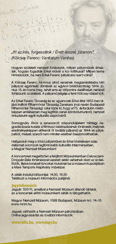 Hallgassuk meg a többi pályaművet és Erkel kivételesen szép dallamait a korszak legfontosabb kulturális intézményében, a Magyar Nemzeti Múzeumban!