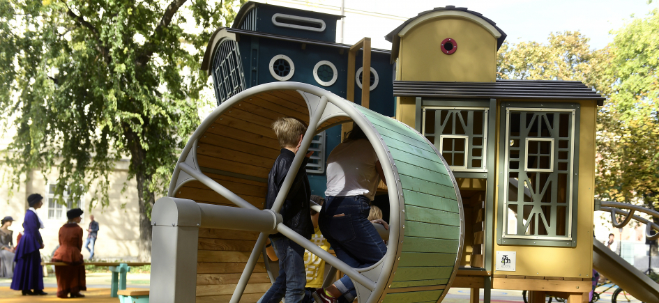 A Múzeumkertben olyan játszótér született, amely felidézni, megjeleníteni a historizmus építészeti kultúráját, Budapest kulturális életét, beleértve az öltözéket és divatot, az újságok tipográfiáját, a kézzel írás szépségét, a korszakra jellemző színeket, közlekedést, továbbá a két regény erkölcsi tanítását, a „római és irokéz” virtust, vagyis a nemes jellemet. A játszótér a 2-14 éves korosztály számára az önálló játékélmény biztosítása mellett a kreativitásra és a kooperációra is ösztönözni a gyerekeket.