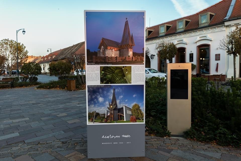 A kiállítás másik eleme egy olyan utazó oszlop, mellyel a szervezők a mester szellemiségét, munkásságát szeretnék közelebb vinni az emberkehez. A két és fél méter magas installáció mind a négy oldalán fotók és tervrajzok láthatók Makovecz épületeiről, valamint a falakba épített monitorokon különböző digitális tartalmak, tematikus filmek, légi felvételek engednek betekintést e páratlan életműbe.