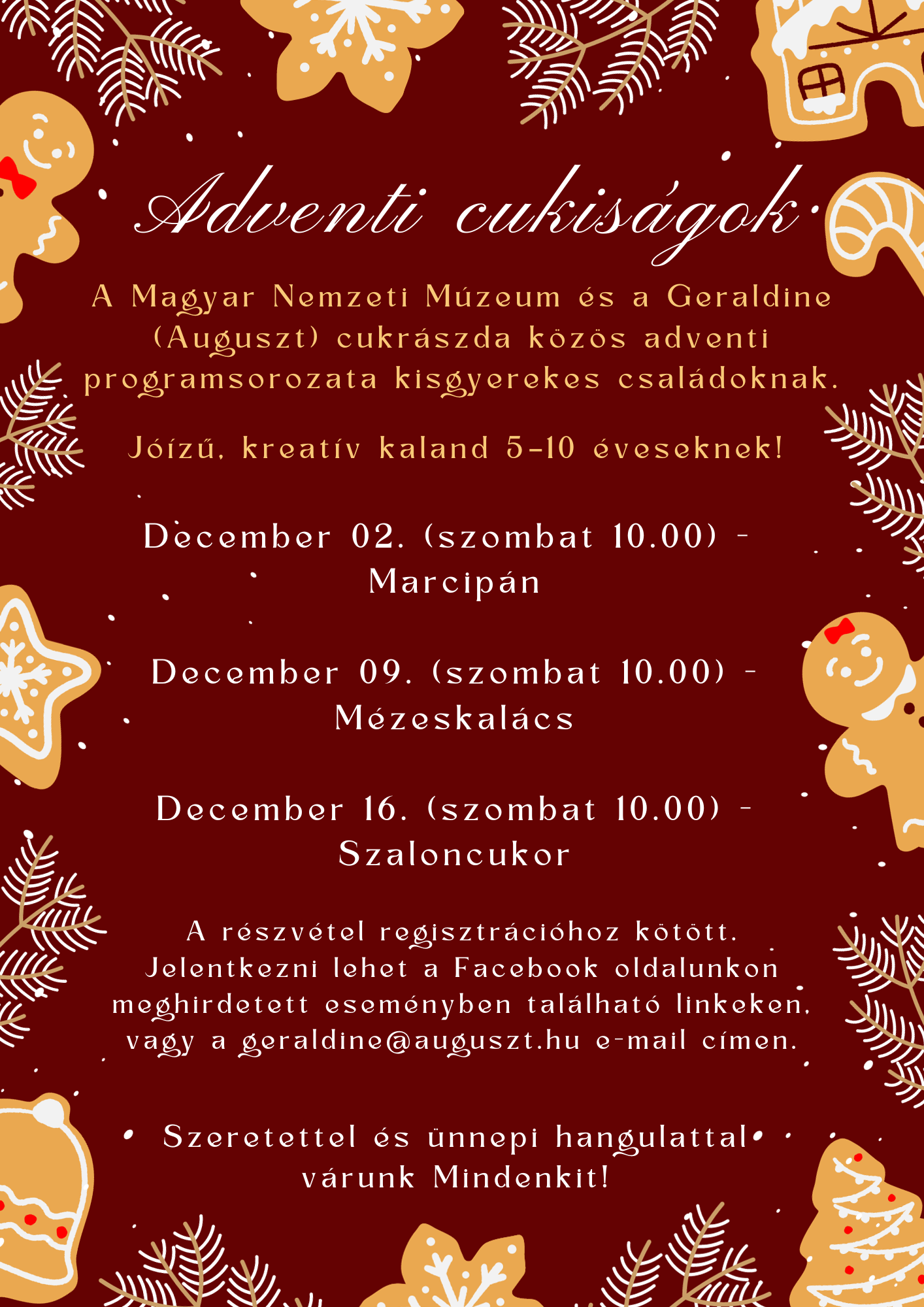A Magyar Nemzeti Múzeum és a Geraldine (Auguszt) cukrászda közös Adventi programsorozatára hívjuk szeretettel az 5 és 10 év közötti gyerekeket!