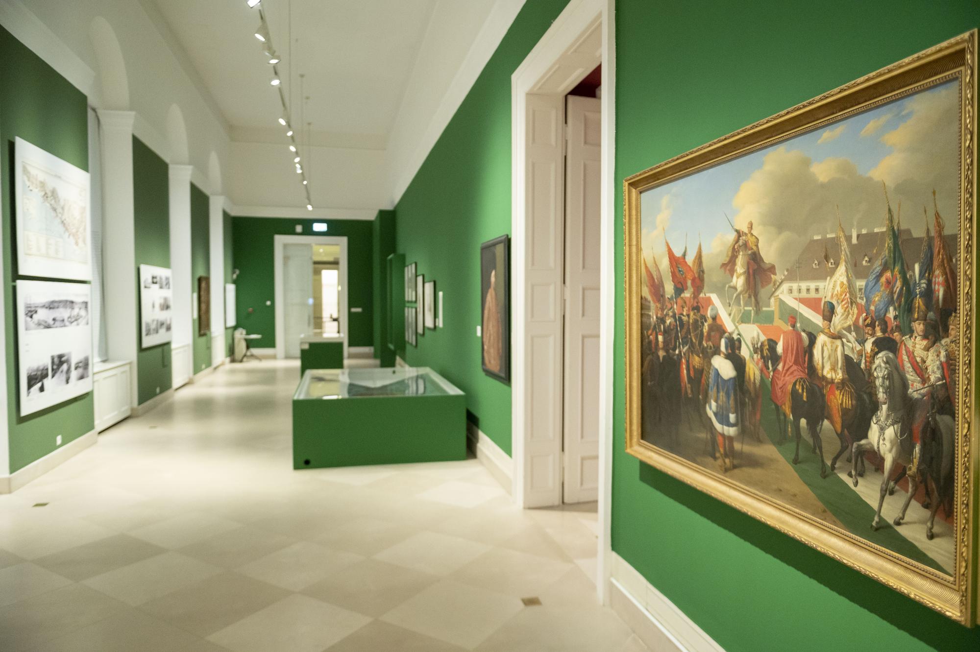 De megtekinthető egy 1647-ből származó koronázási zászló Horvátország címerével, ami a legrégebbi ismert horvát zászló, Zrínyi Miklós sisakja és szablyája a 16. század közepéről, illetve Majláth Györgyné koronázási díszruhája 1867-ből. Emellett a kiállításon láthatók Munkácsy Mihály és Vlaho Bukovac festményei is.