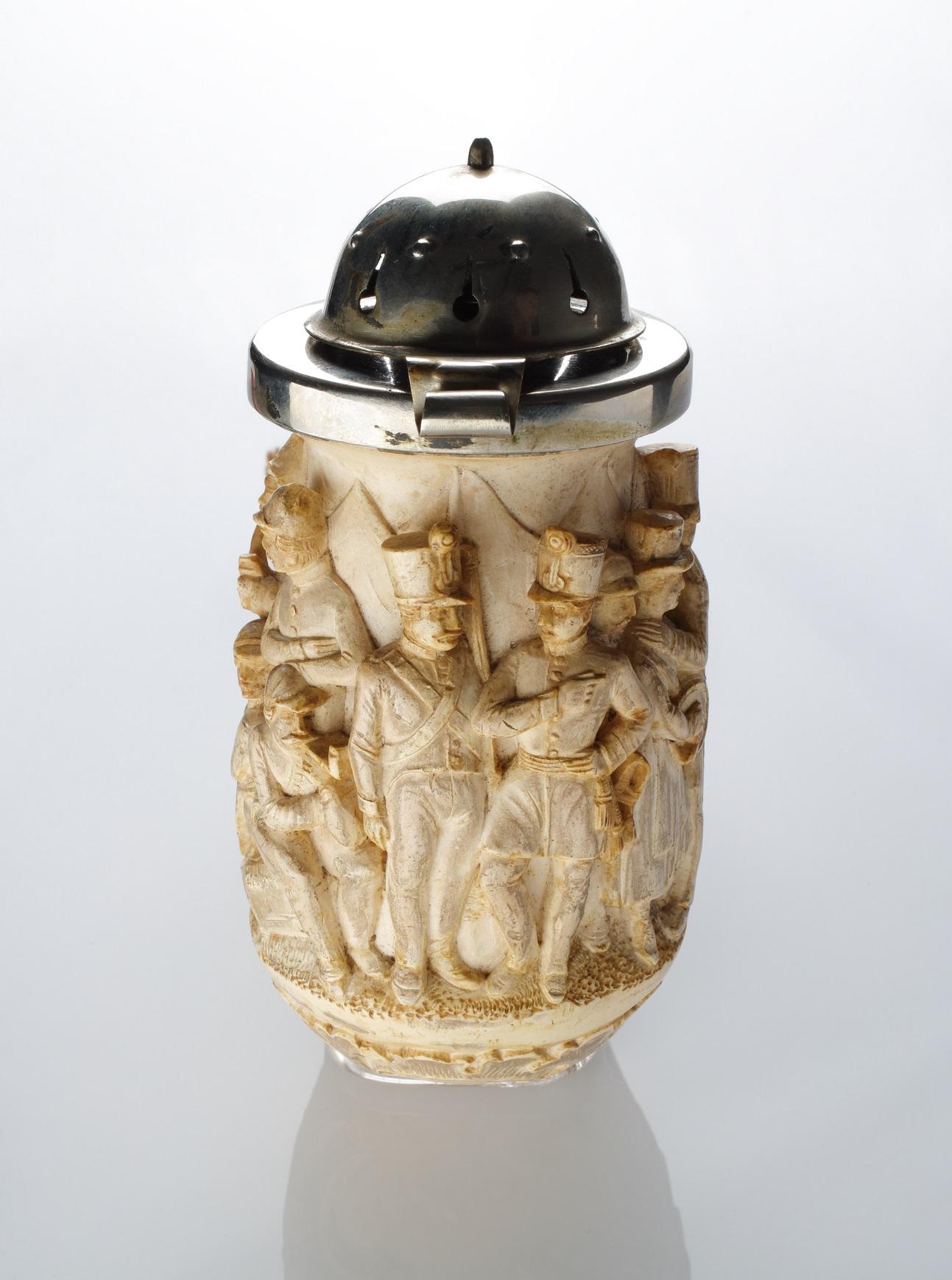 Valódi ritkaság a dupla ezüstfedelű, éremképet magába foglaló pipa a 19. század elejéről. A pipa formája, ötvösművű ezüstözése, szépen metszett, faragott dekorációja a férfiak ízlésének, tekintélyének is fokmérője volt.