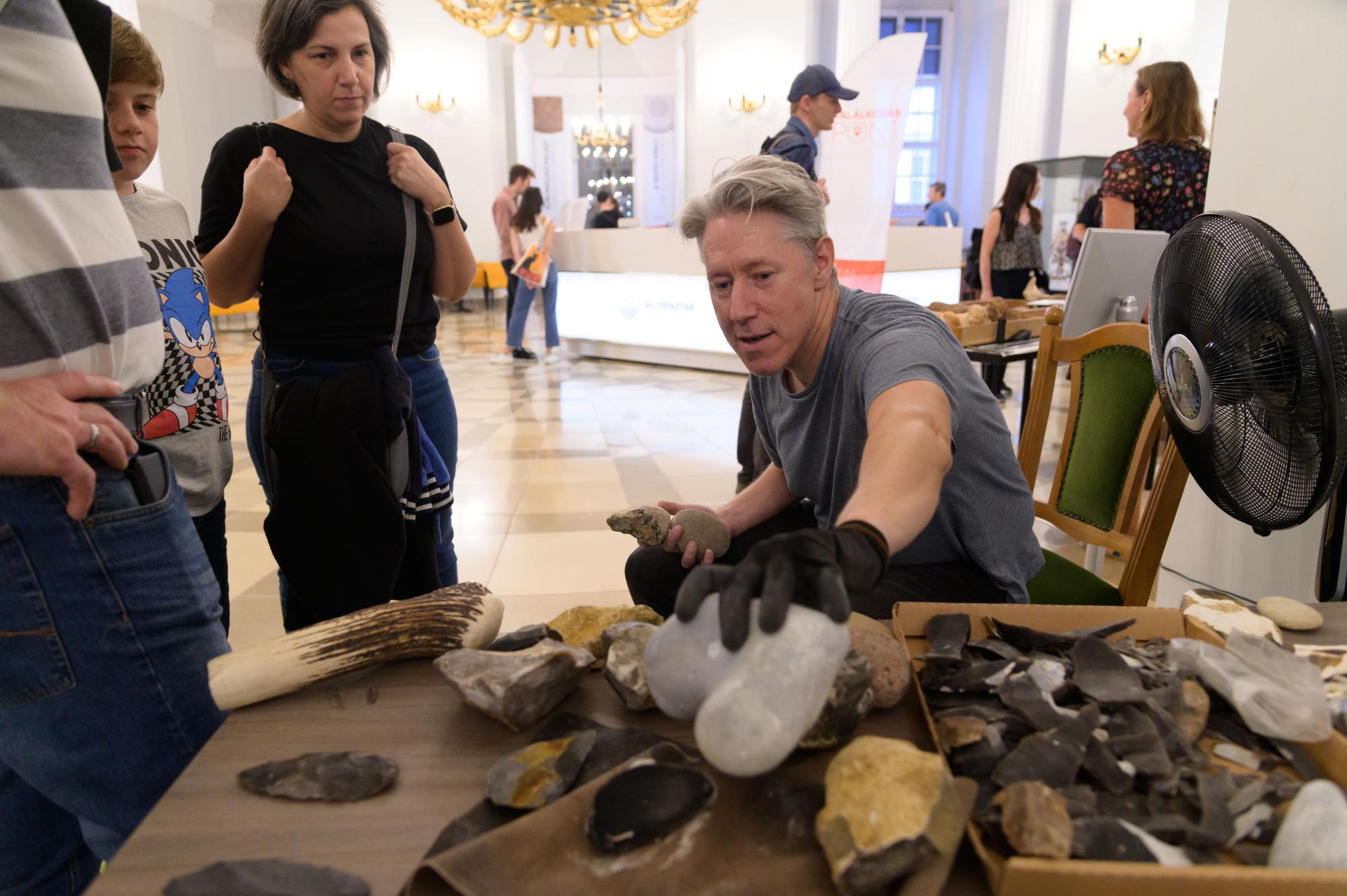 Dr. Lengyel György, a kőeszközök egyik hazai specialistája a pattintás rejtelmeibe vezeti be a látogatókat.