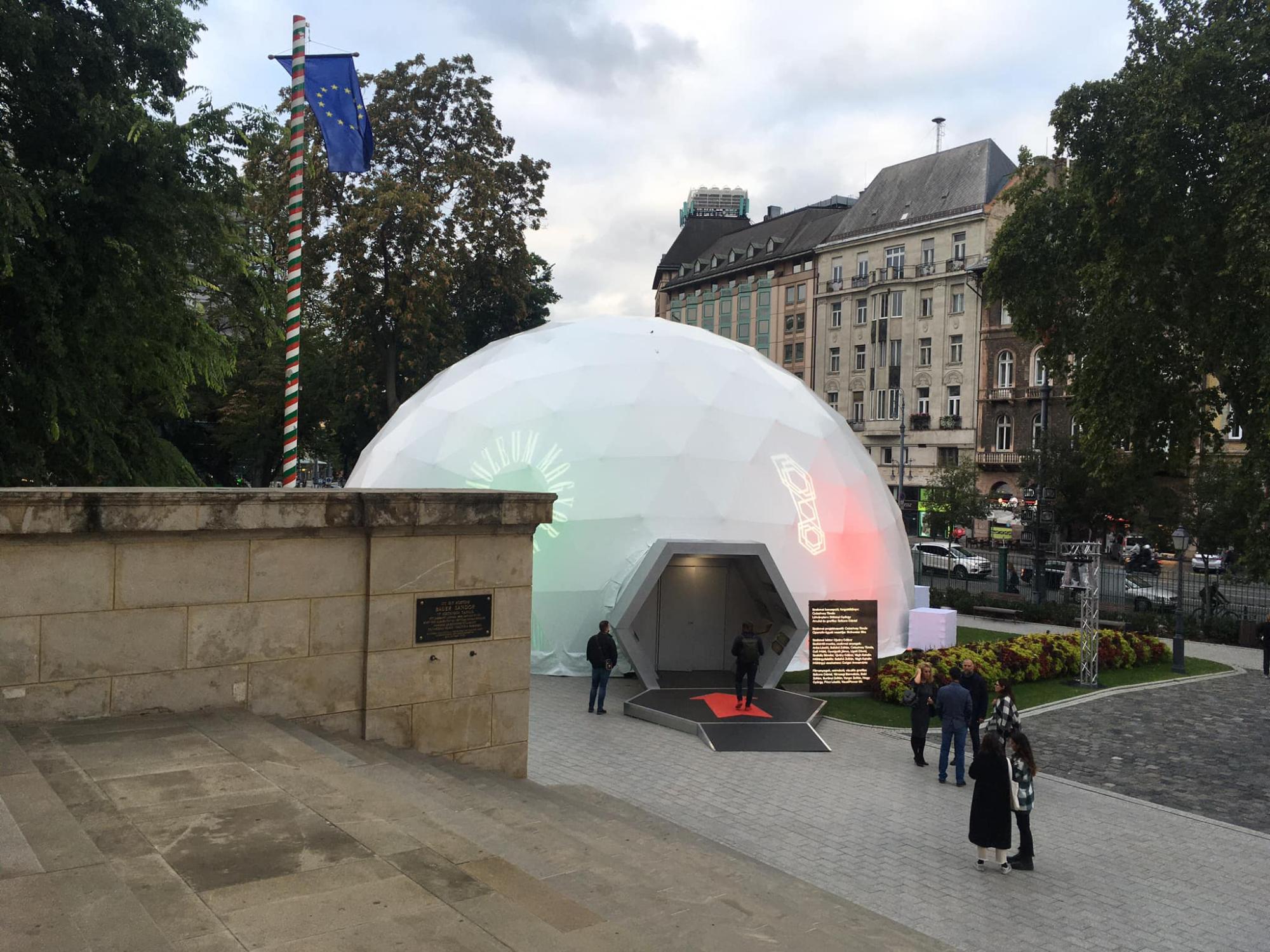 A Magyar Nemzeti Múzeum Múzeum•kör•út vándorkiállítása Trianon centenáriumi évfordulóján Magyar Nemzeti Múzeum kertjébe érkezett Az idén 4 helyszínen lesz látható a különleges, semmihez sem hasonlítható gömbsátor, és jövőre remélhetően újabb városok főterén lesz látható. Ebben az évben két hétig, október 12-ig minden nap 10–21 óráig Budapesten is megtekinthető az egyedi látványvilágú, érzelmekre is ható kiállítás.