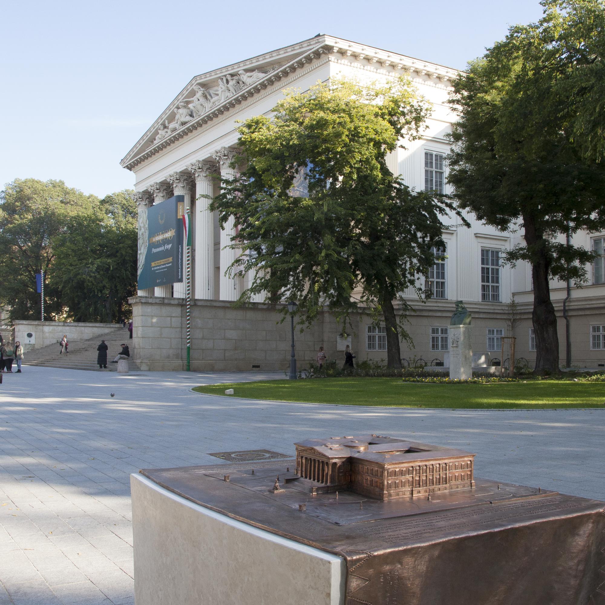 A Múzeumkert legújabb szobra, az elsősorban vakok és gyengénlátók tájékozódását segítő ún. Tapintható modellszobor 2019 szeptemberében készült el a Nemzeti Múzeum épületét és kertjét M1:250-es léptékben bemutatva. A vakok braille-feliratán kívül rövid magyar és angol szöveg is került a modellszobor bronz felületére, a magyar így szól: „A Magyar Nemzeti Múzeum a magyar történelem tárgyi emlékeit gyűjti és mutatja be. A múzeum klasszicista stílusú épülete 1837–47 között épült, tervezője Pollack Mihály építész volt. Az 1802-ben létrejött Magyar Nemzeti Múzeum időrendben Európa harmadik nemzeti múzeuma, alapítója gróf Széchényi Ferenc. A múzeum előtti tér az 1848-as forradalom egyik jelentős helyszíne volt. Az épület körüli angol-park 1855-57-ben közadakozásból jött létre Petz Ármin tervei alapján.” A talapzat egyetlen kőtömbből készült, anyaga ugyanaz a horvát mészkő, a Kanfanar, mint az átellenben lévő Nemzeti Emlékhely-sztélé kőanyaga. A befoglaló forma a könnyebb megközelíthetőség érdekében enyhén lefelé szűkülő a fő és a hátsó homloknézete enyhén ívelt úgy, hogy felülnézetben egy csapott végű navett formát követ. A kő felületre illeszkedő bronz szalagrészen drapériaszerű redővetődés jelenik meg, illetve egy diszkréten süllyesztett háromszög sorminta a széleken, melyek a szabadságharc katonai zászlaja mintázatának megidézésével a Nemzeti Múzeum és kertjének az 1848-49-es forradalom és szabadságharcban betöltött szimbolikus szerepére utalnak. A Kálvin téri főkapu közelében, az első nagy növénysziget szélén elhelyezett modellszobor alkotói Baráz Tamás és Erős Apolka szobrászművészek voltak.
