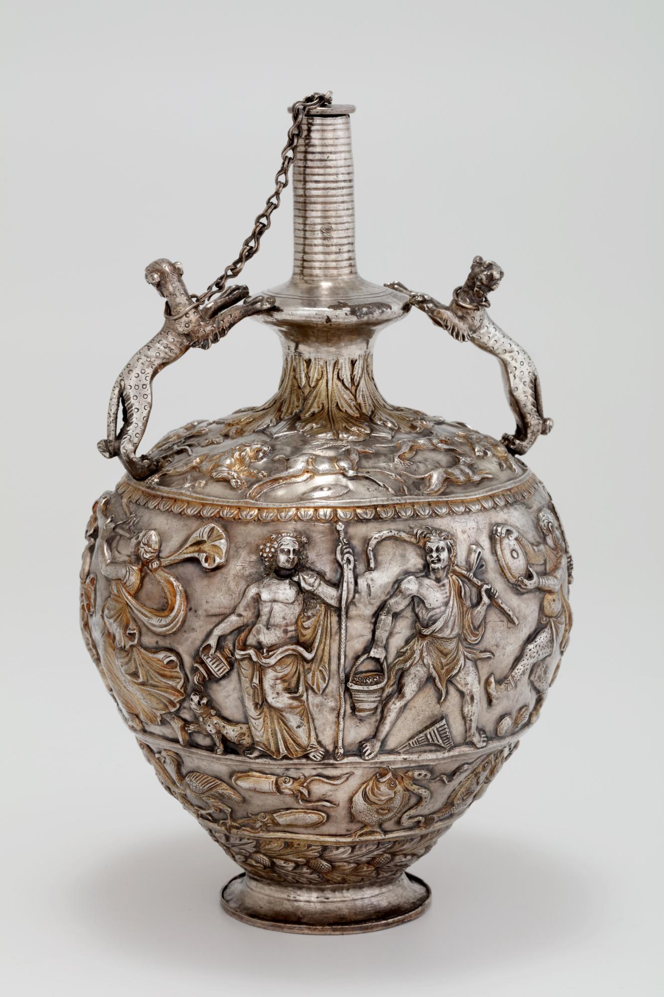 In its currently known form, the hoard consists of 14 large silver vessels, as well as a large copper cauldron, in which the items were hidden. Among some thirty precious metal treasure troves including pieces of banqueting sets from the late imperial period, the Seuso treasure is outstanding with regard to both its artistic and material value. Bearing in mind its total weight, the silver set displayed at the exhibition is considered as the most valuable among the existing late imperial silversmith treasures.