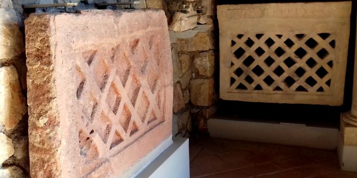 A villagazdaság két épületét összekötő folyosóban a Veszprém megyében előkerült római kori faragott kőemlékek kiemelkedő darabjai kerülnek bemutatásra. A lapidárium (kőtár) egyik részében a temetkezéssel kapcsolatos emlékek: sírkövek, szarkofágok; a másik részben a hitvilághoz, kultuszokhoz kötődő emlékek és a különböző építészeti elemek, pl. kerítések, oszlopok találhatóak.