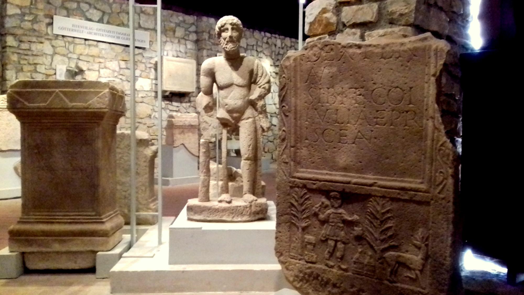 A balácai villagazdaság két épületét összekötő folyosóban a Veszprém megyében előkerült római kori faragott kőemlékek kiemelkedő darabjai kerülnek bemutatásra. A 2002-ben átadott Kőtár I. a temetkezéssel kapcsolatos emlékeket gyűjti össze: sírkövek, szarkofágok mellett a likas-dombi halomsír lábazati rekonstrukciója is látható. A Kőtár II. részben a hitvilághoz, kultuszokhoz kötődő emlékek és a különböző építészeti elemek, pl. kerítések, oszlopok találhatók. A központi lakóházban enteriörben elhelyezett két márványból készült asztal eredetije is itt került elhelyezésre.
