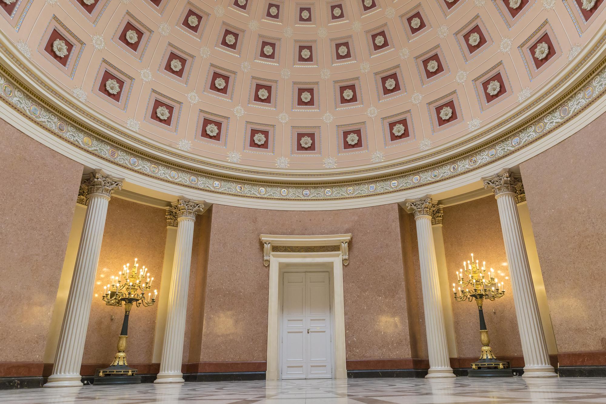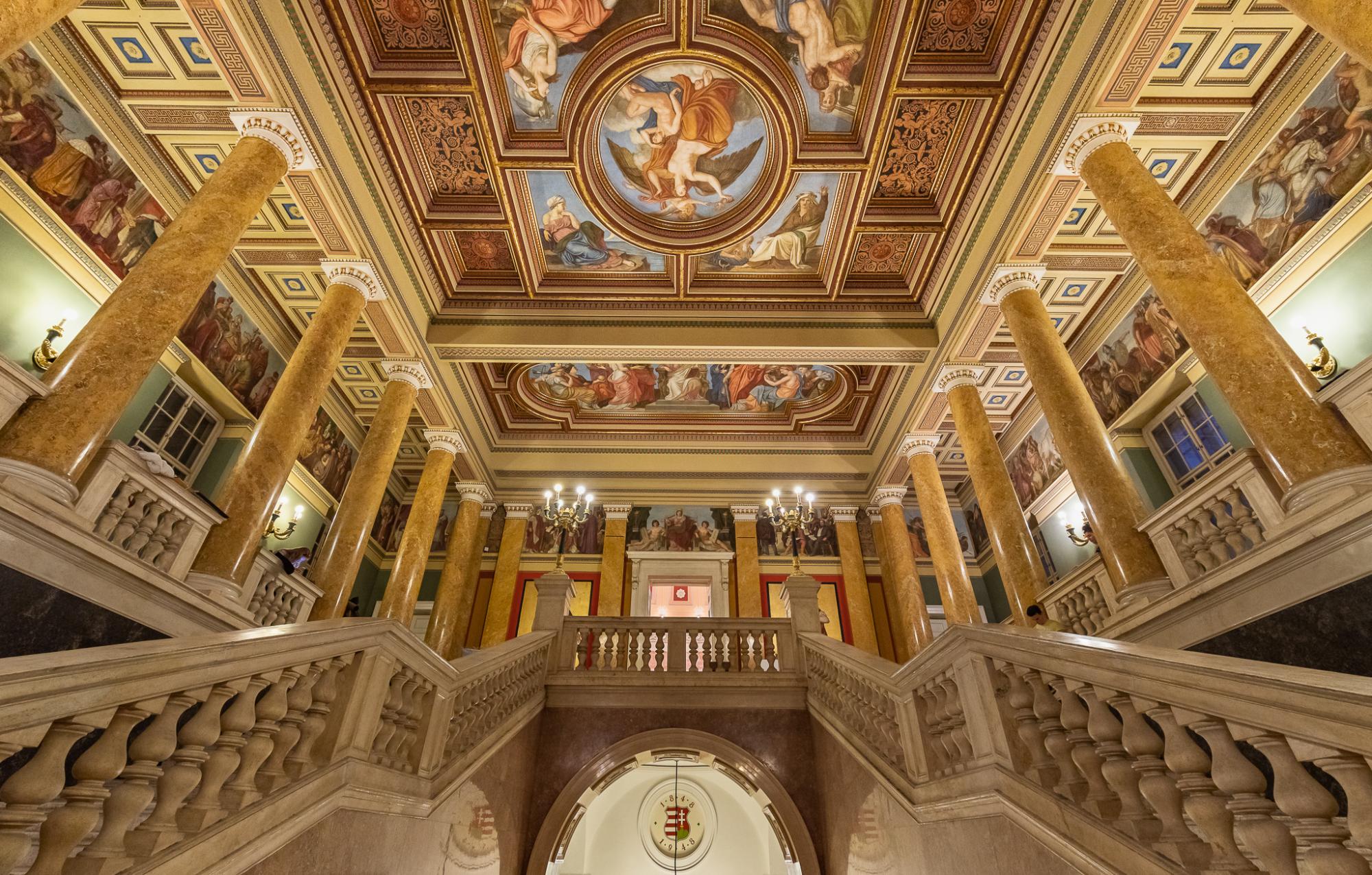 A Magyar Nemzeti Múzeum legnagyobb reprezentatív terme, ahol a tervező Pollack Mihály valódi olaszos eleganciát csempészett be a reformkori Magyarország szívébe.