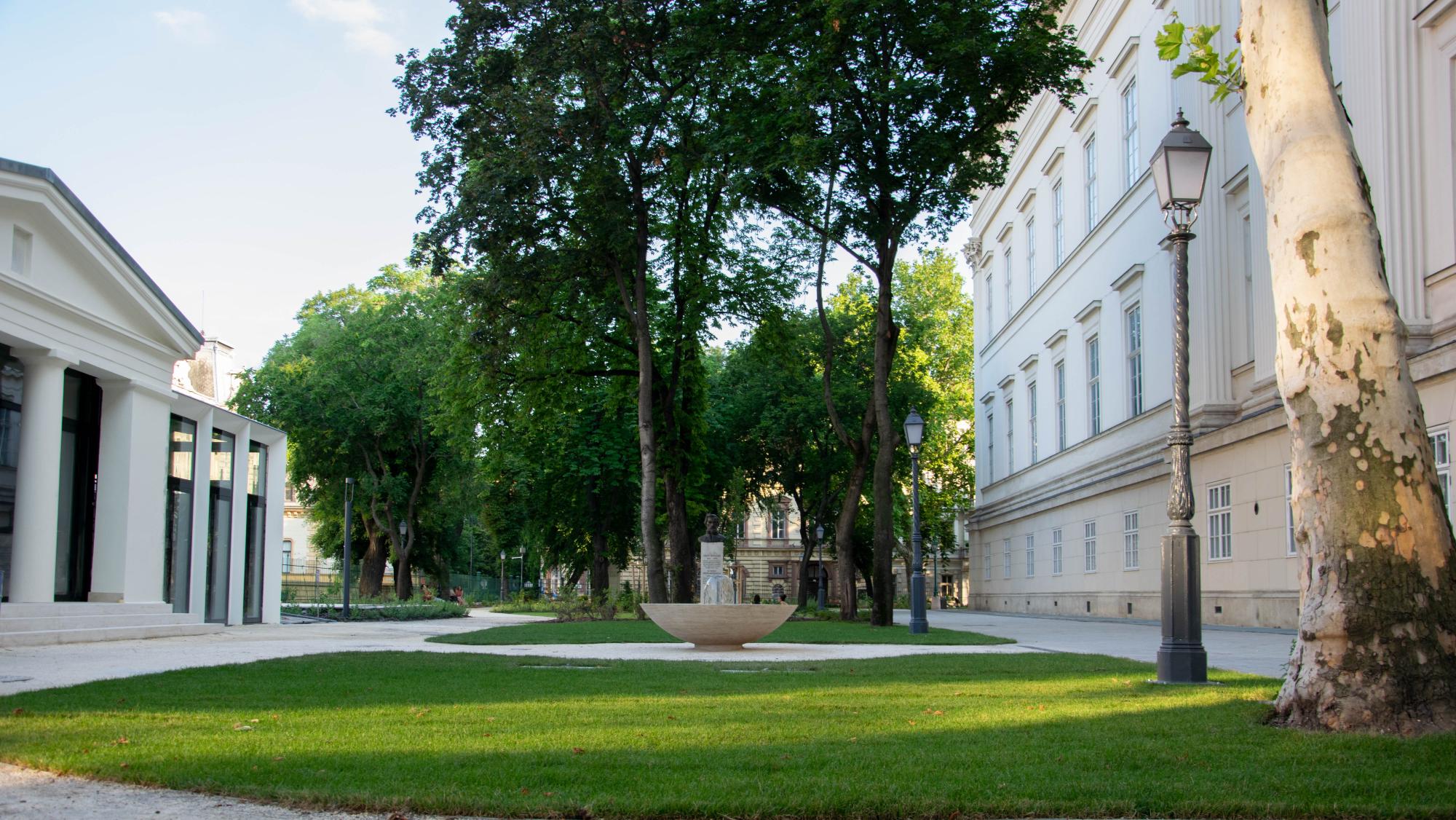Az ikonikus épületet gyönyörű park veszi körül. A Múzeumkert ma és a régi időkben is a hétköznapok kedvelt pihenőparkja volt, melyben az elmúlt másfélszáz évben számos irodalmi és történelmi személyiségnek állítottak emléket.